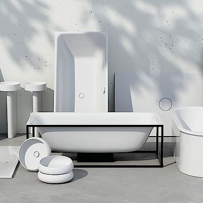 Badelemente aus natürlichem glasierten Titan-Stahl von Bette.